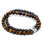 See ainulaadne topelt käevõru magnetiidi jõu ja tiigrisilma kivide iluga. Mugava metallist elupuu sümboliga käevõrud on loodud hõlpsaks kandmiseks ja on nööritud venivale elastsele kummile, et tagada mugav ja paindlik sobivus kõigile.